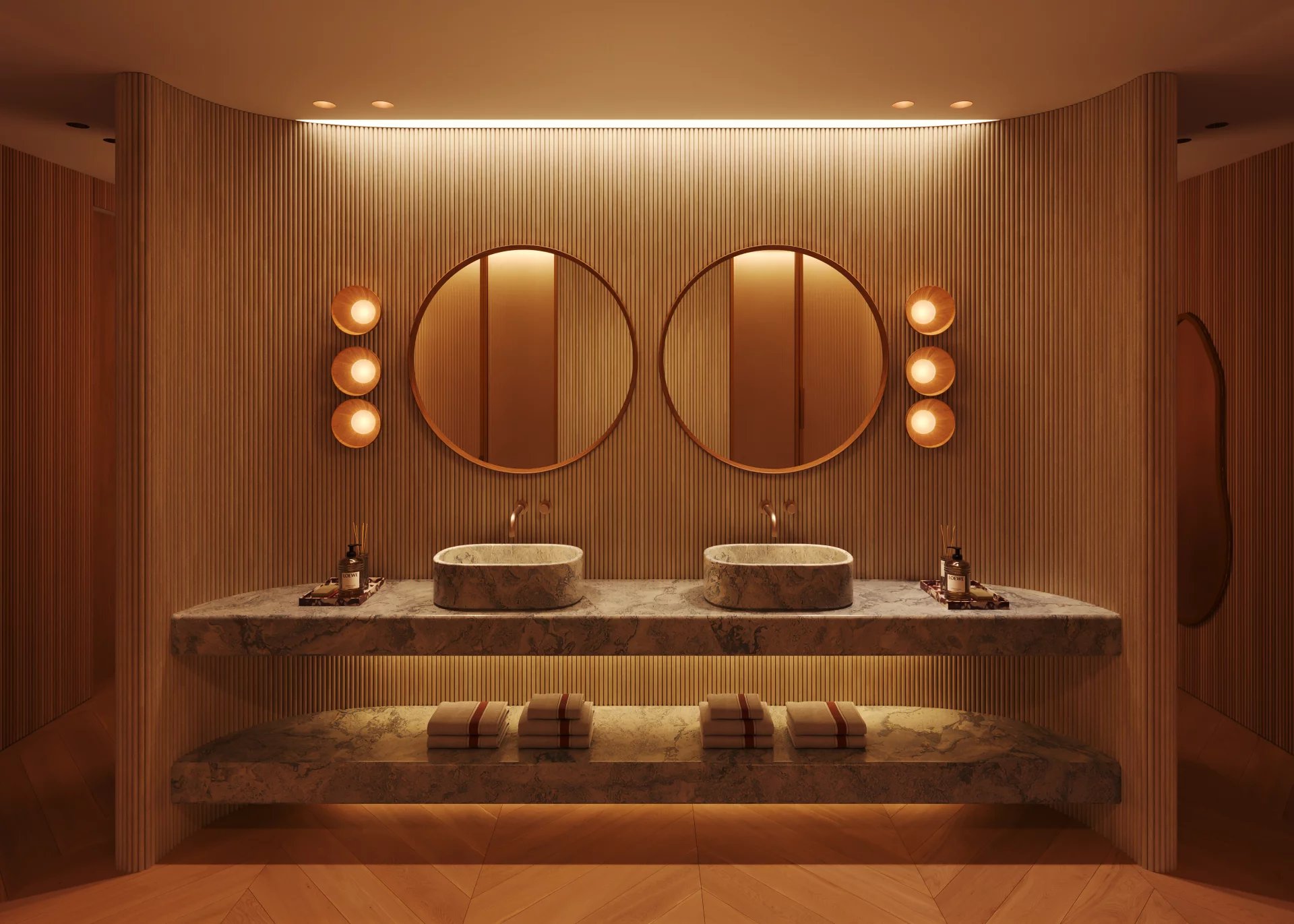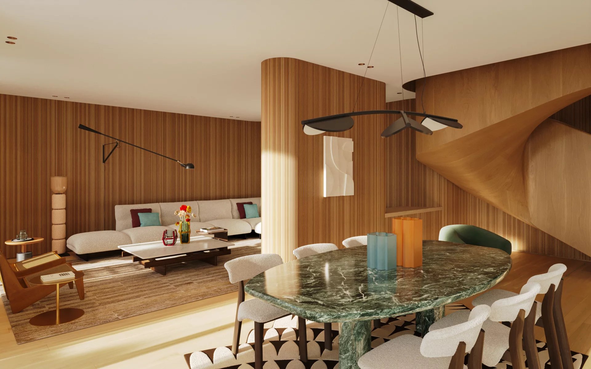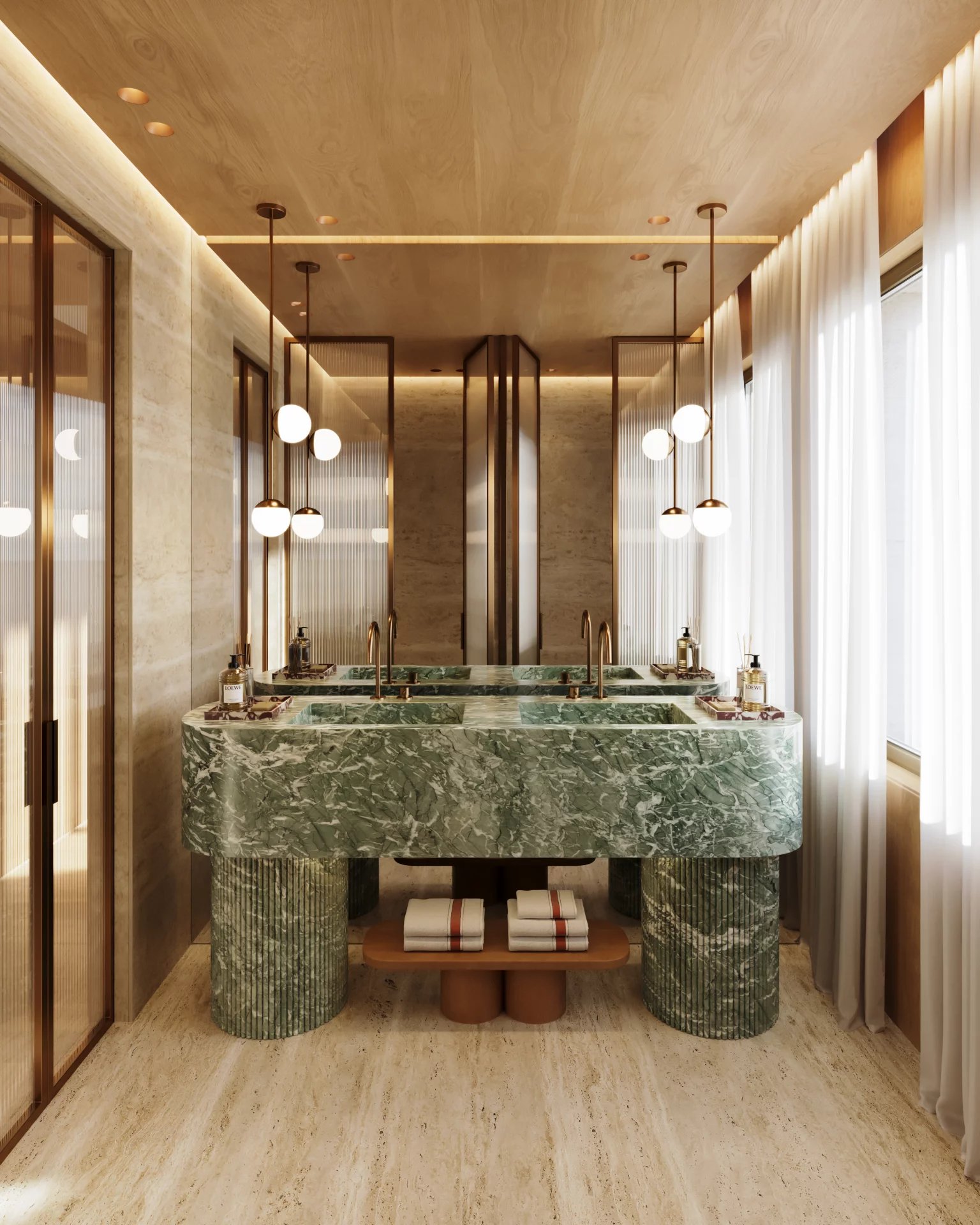 Inside, natural light floods spaces clad in travertine marble, oak wood and bronze details, creating private sanctuaries for those who value design, discretion and permanence.