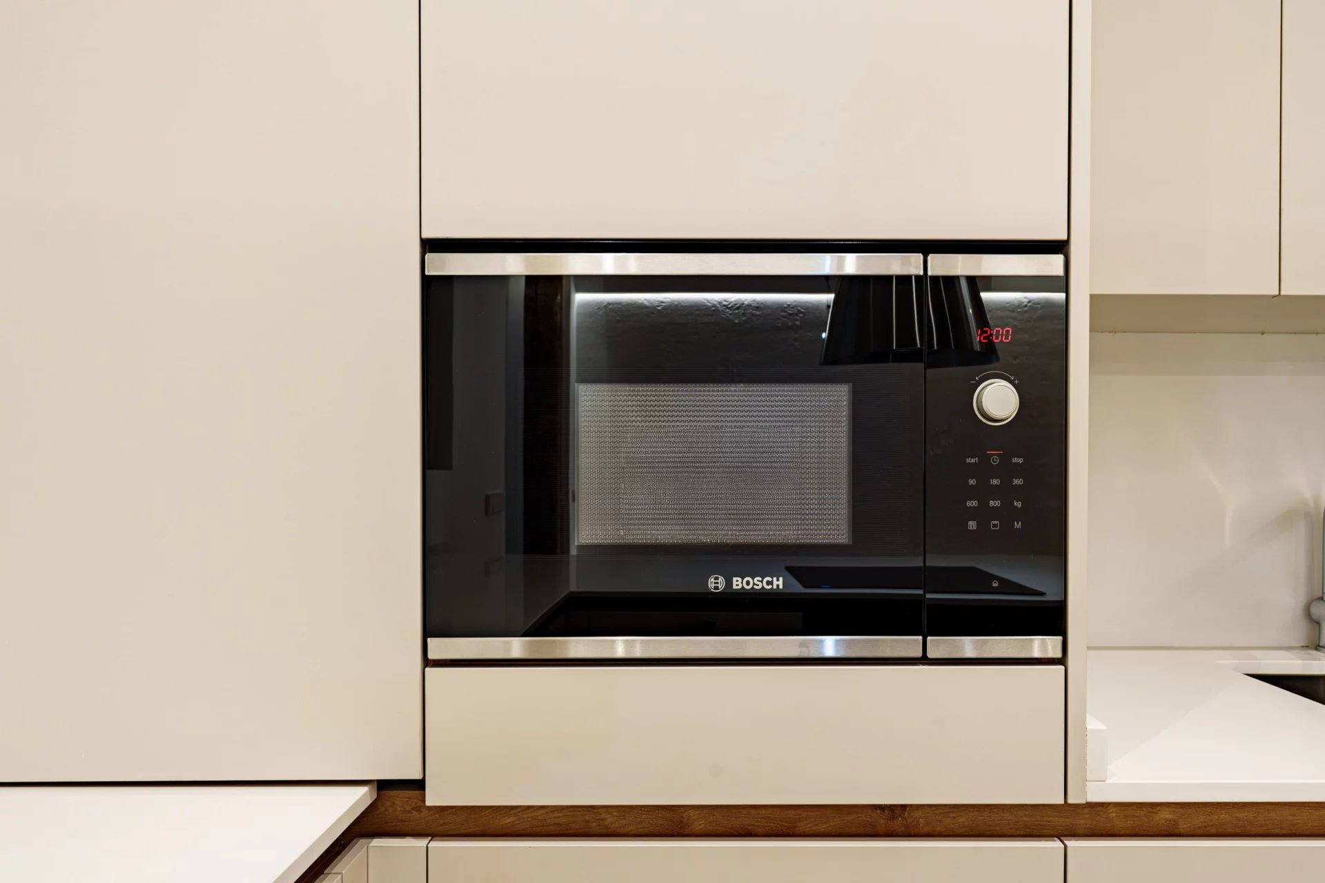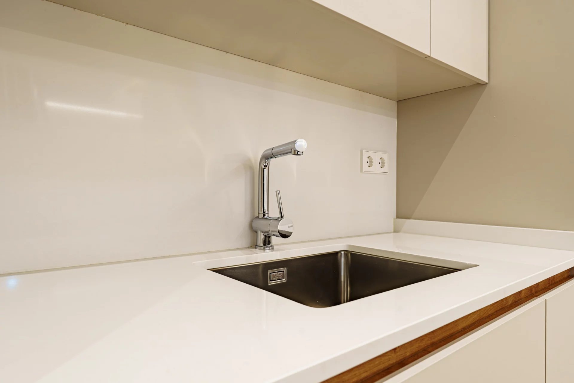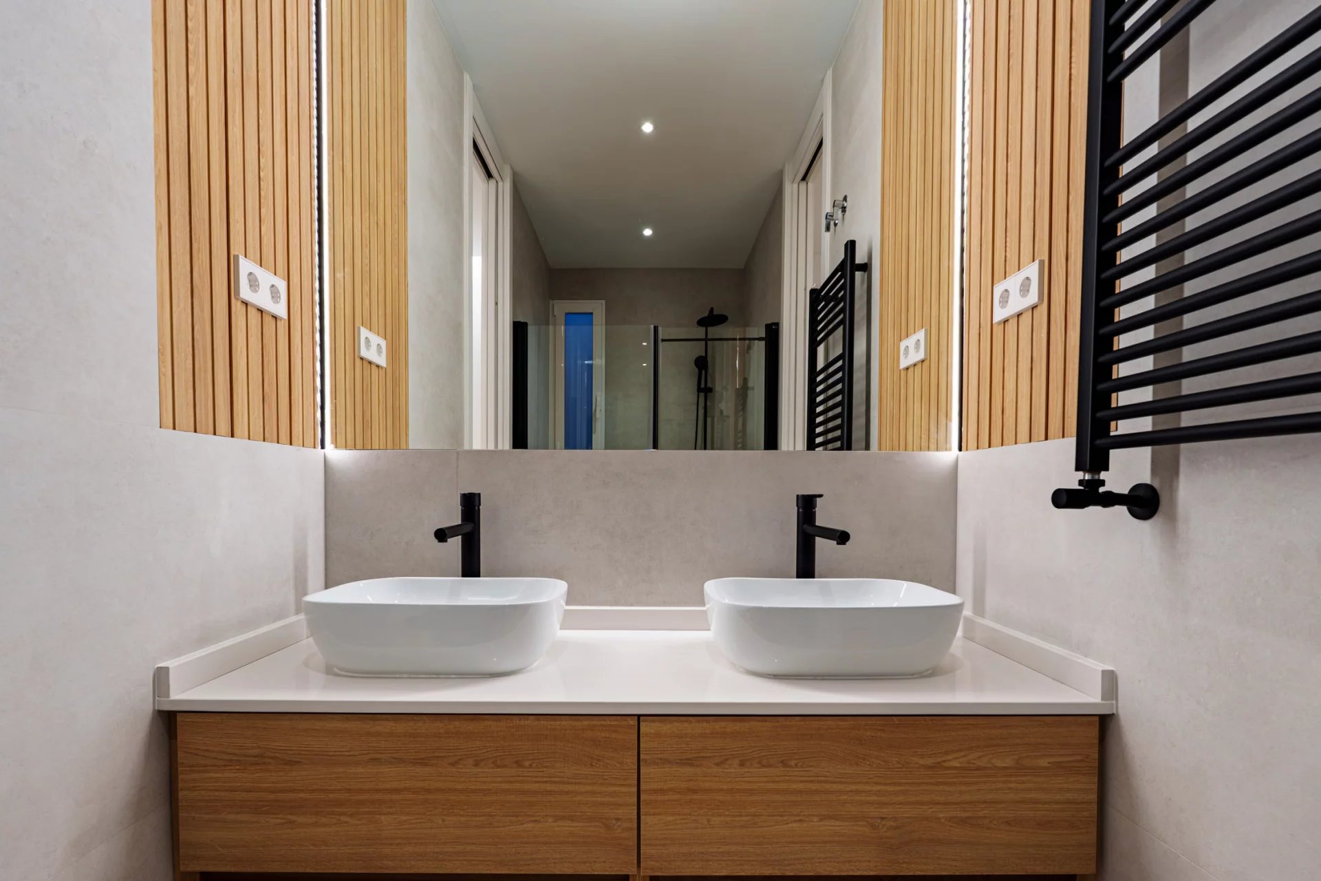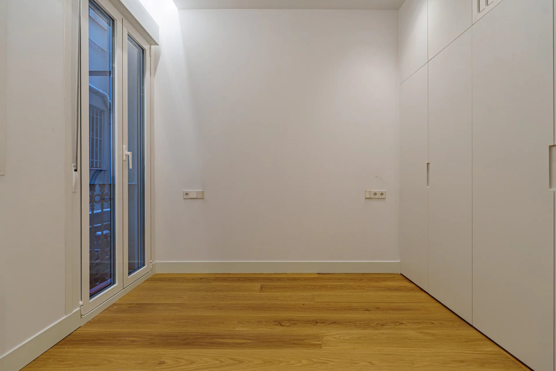 The apartment is distributed in three bedrooms, two bathrooms and a guest toilet, plus a spacious living room with balconies overlooking the boulevard and an open kitchen design with central island and Bosch appliances of last generation. The renovation combines natural wood, indirect lighting and original exposed beams, preserving the soul of the building with a contemporary and elegant aesthetic.