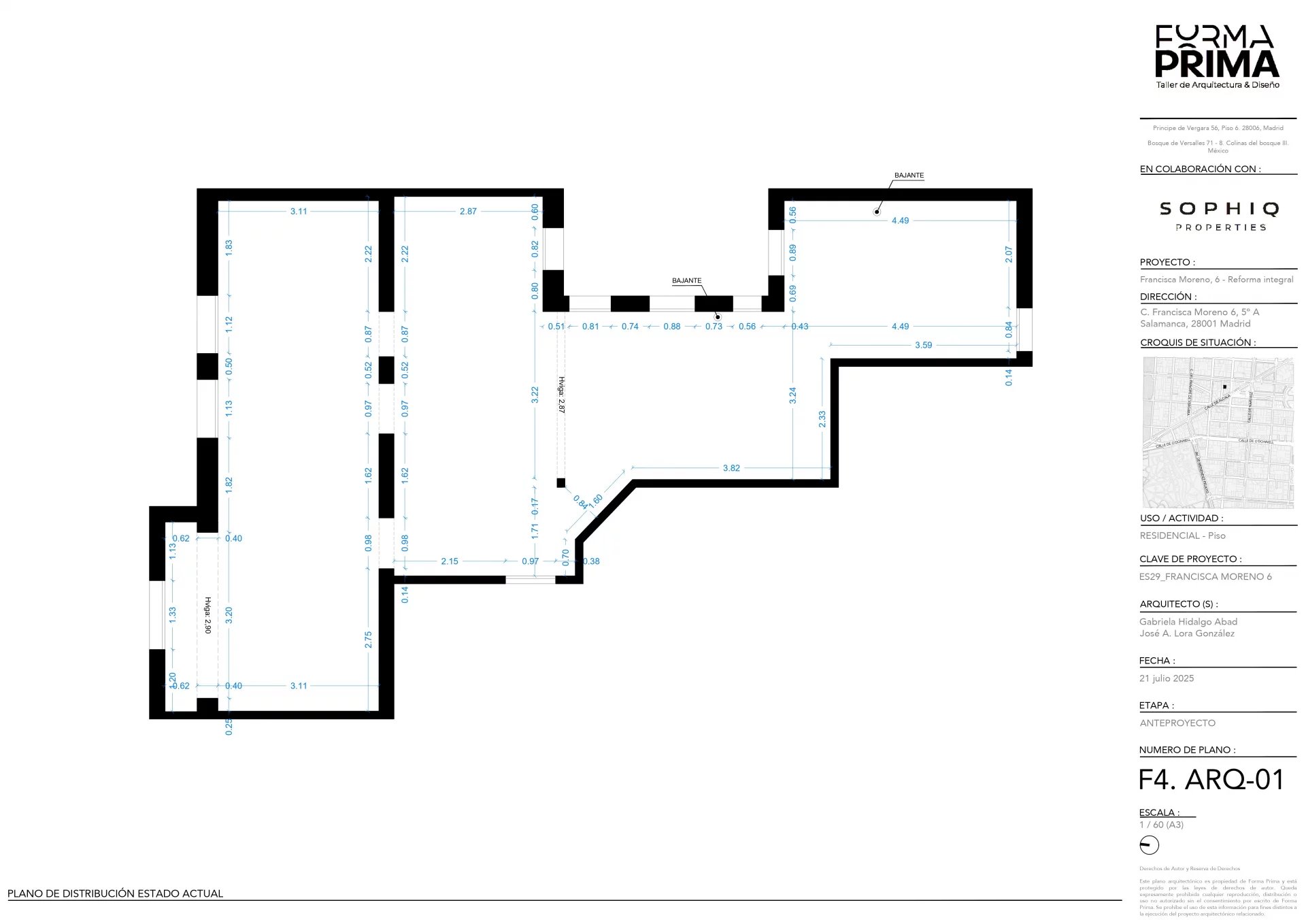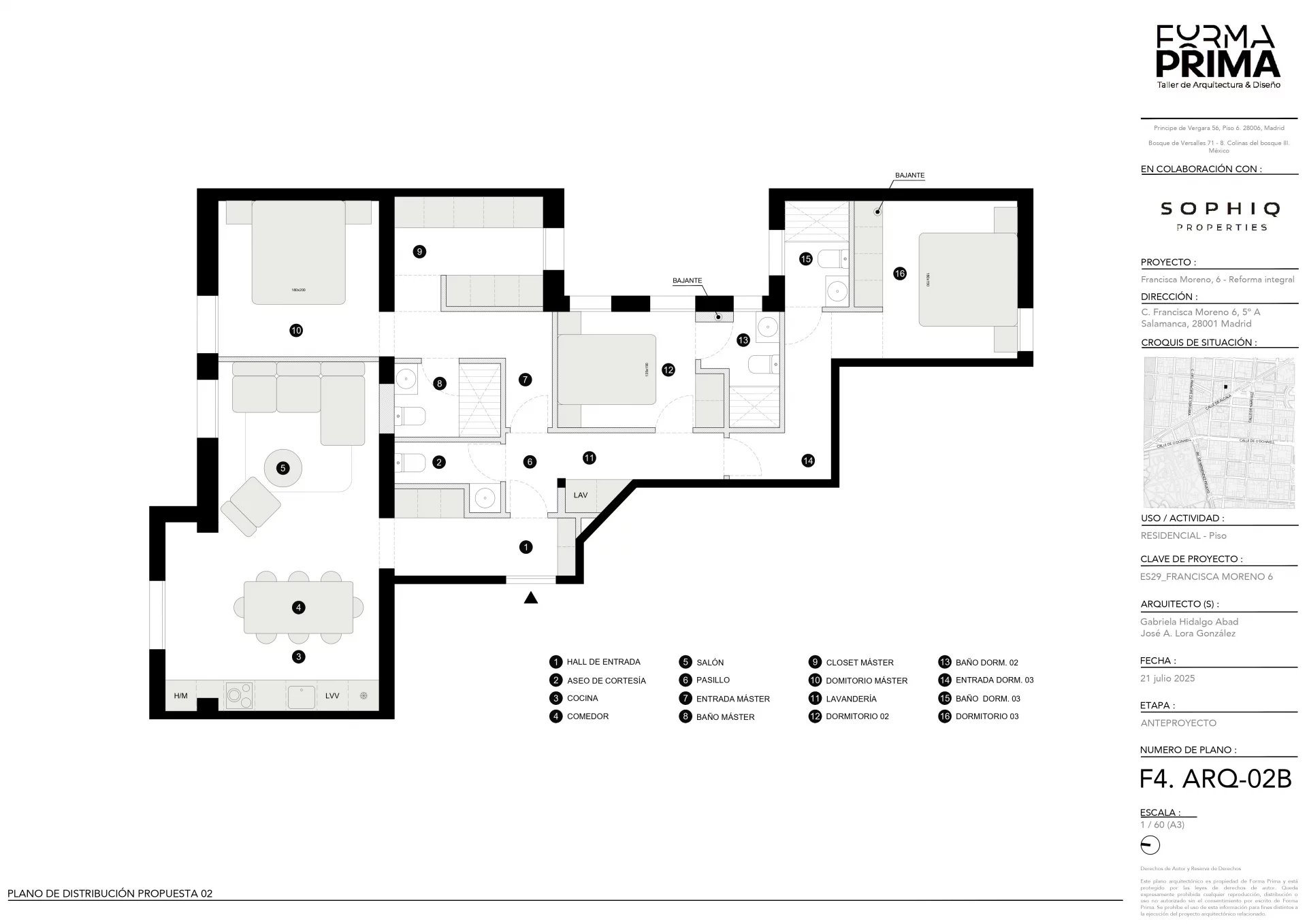 The architectural and interior design proposal for the Francisca Moreno 6 property, designed by our architect, offers a fully customizable space that combines elegance and functionality. The project highlights a large living-dining room with an integrated designer kitchen, ideal for those who value sophistication and comfort. The high ceilings provide a unique sense of spaciousness and elegance, while the top-quality finishes and materials ensure a luxurious and welcoming ambiance. The property, located in a classic 1920's building, offers three versatile rooms that adapt to the needs of its residents, ensuring maximum comfort and functionality.