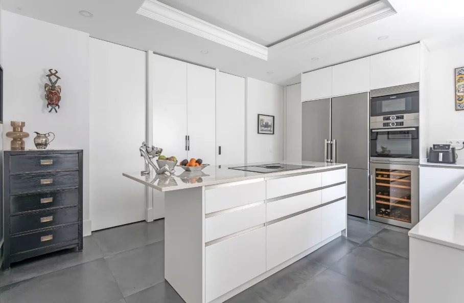 La cocina independiente, conectada de forma fluida con la zona social, es amplia, funcional y perfecta para el día a día, con zona de comedor informal, área de lavado y un dormitorio de servicio con baño en suite.