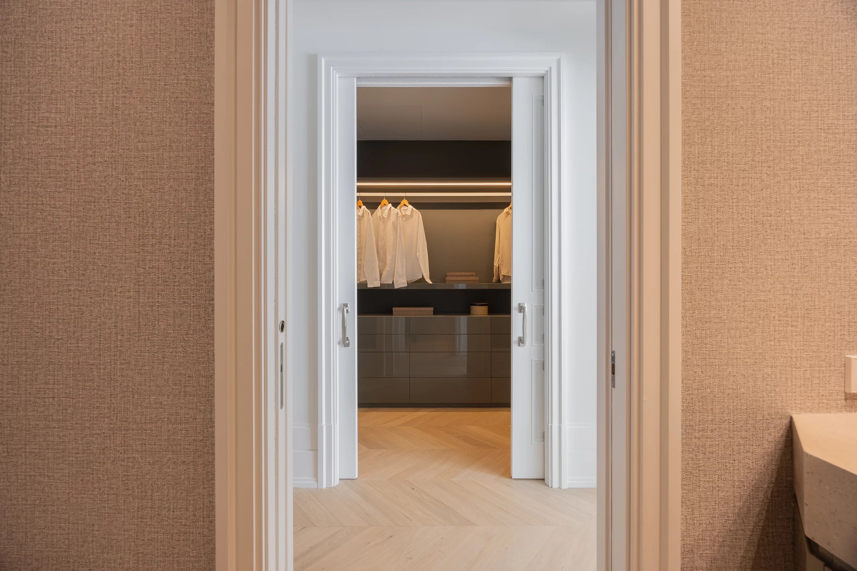 Ubicada en una finca representativa con portero físico, esta propiedad destaca por sus techos altos, su distribución sofisticada y una luminosidad excepcional gracias a su orientación sur.