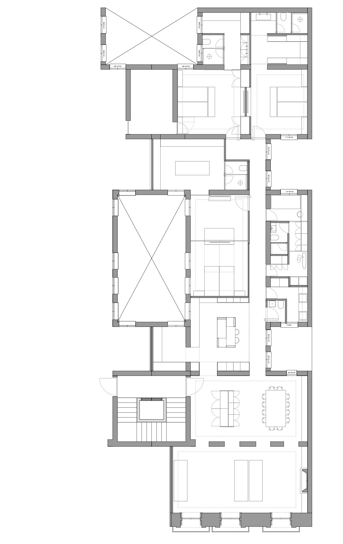 La zona privada permite proyectar cuatro dormitorios, un family room, área de servicio con lavandería, y la posibilidad de incorporar una segunda cocina con aseo de cortesía, logrando así una distribución versátil y perfectamente adaptada a los estándares actuales.