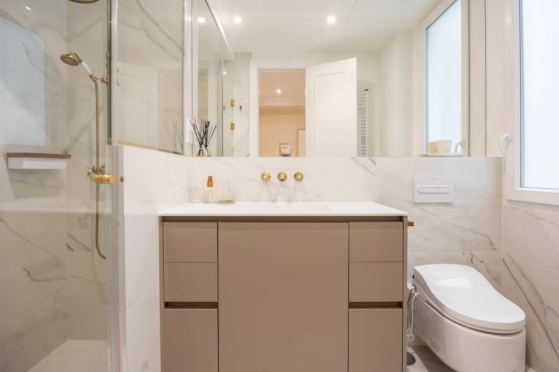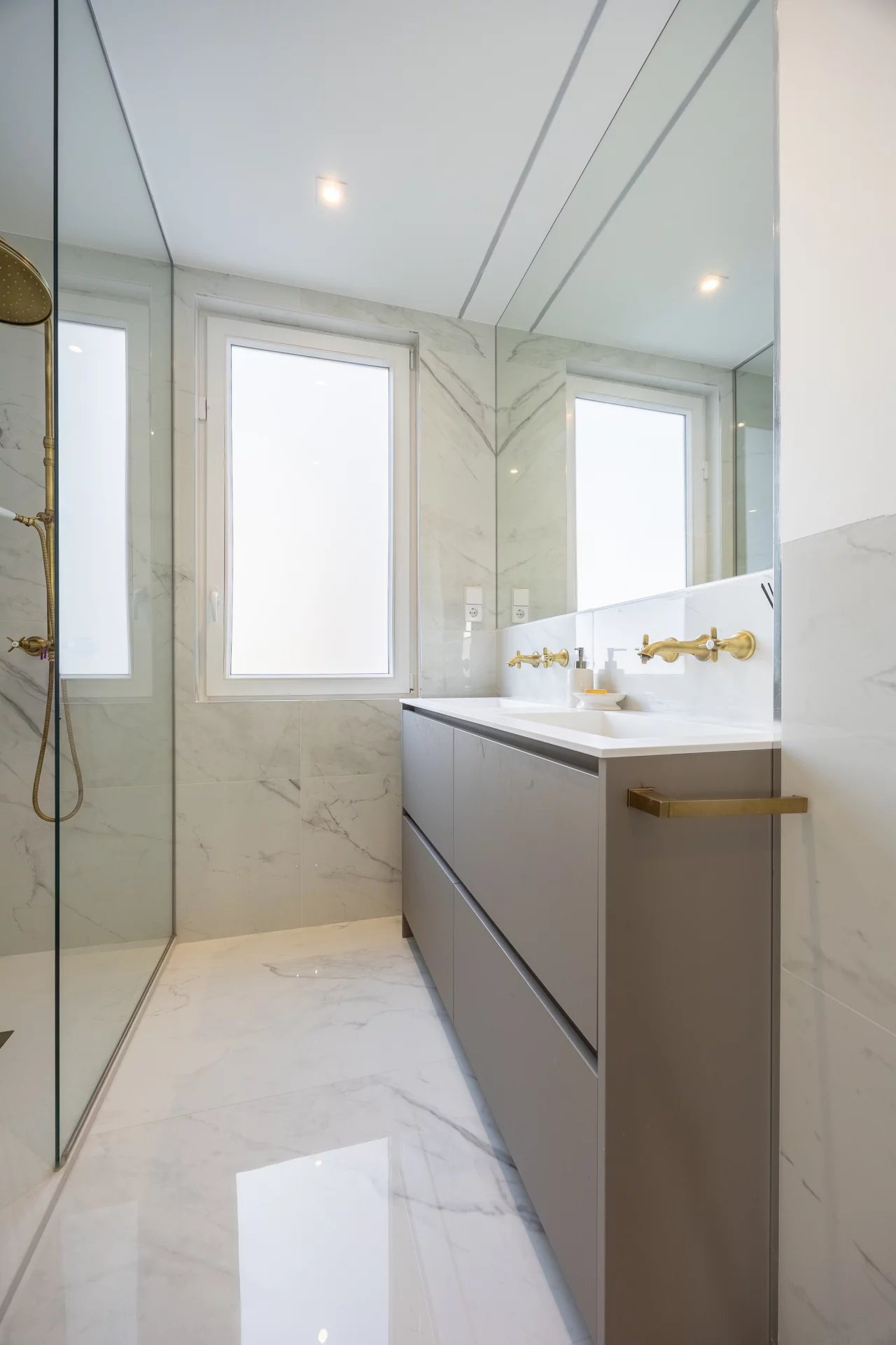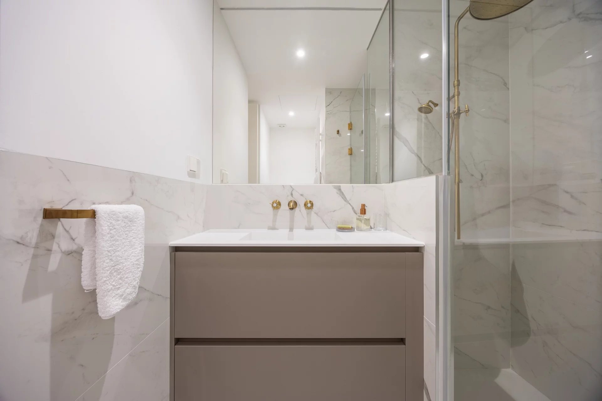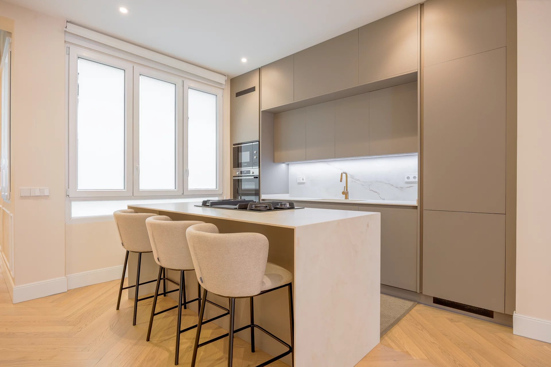 Las mejores calidades del mercado son las usadas, encimera Silestone, cocina de gas, electrodomésticos Bosch, aire acondicionado por conductos con reguladores independientes en cada estancia. Todos los armarios están forrados y vestidos de suelo a techo aprovechando al máximo la capacidad de almacenaje.