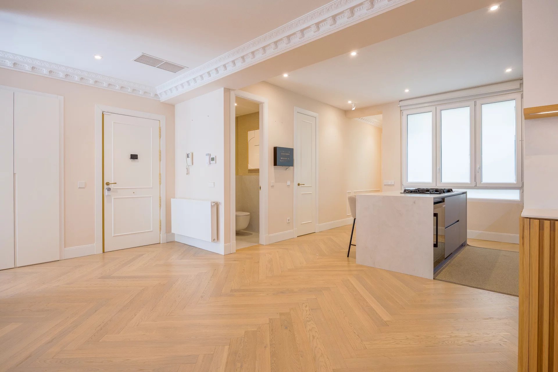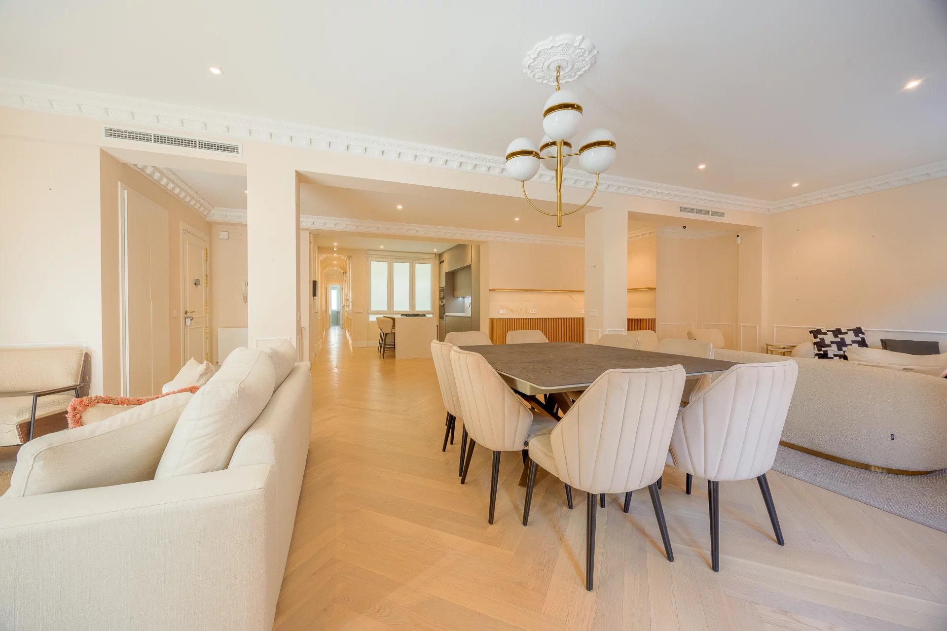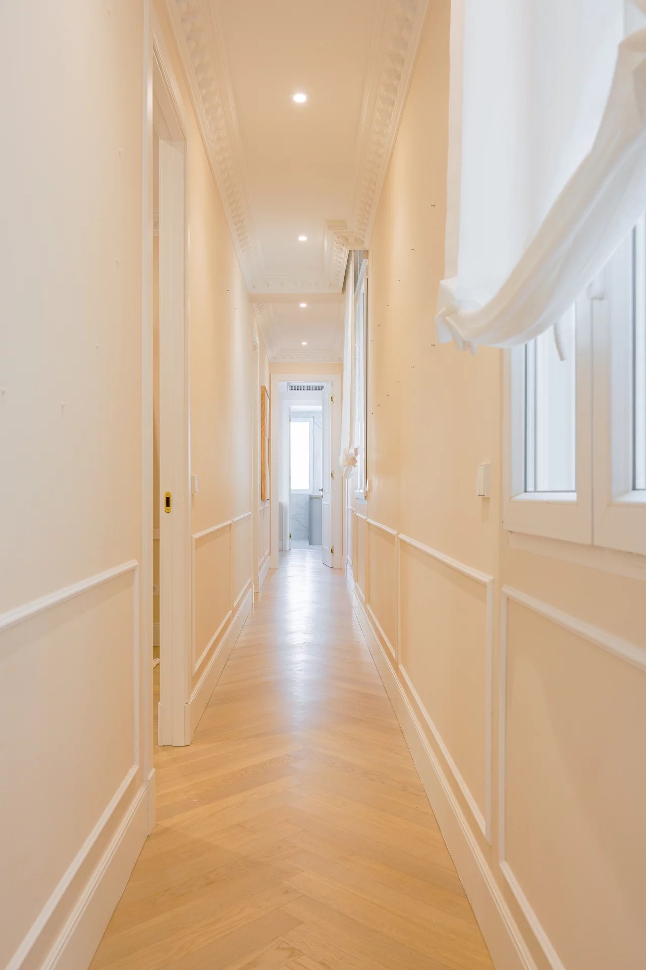 Espectacular vivienda totalmente reformada en planta alta, en magnifico edificio clásico de 1944 con orientación este por lo que en las mañanas la luz inunda toda la zona social de la casa.